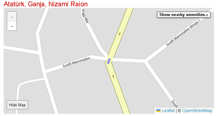 AZERBAYCAN, Absheron District, Goradil: Atatürk Sokak AZERBAYCAN, Absheron District, Goradil: Atatürk Sokak Atatürk küçəsi (Atatürk Sokak), Azerbaycan’ın Absheron District (Abşeron) rayonunda bulunan Goradil köyündedir. Aşıq Humay ve Qafur Məmmədov küçəleri ile bağlantılıdır.[1] 1,60 km (5.233,20 fit) uzunluğundadır. [1]Streets of Azerbaijan, “Atatürk küç., Goradil, Absheron District”, erişim: 16.03.2025 [1]Streets of Azerbaijan, “Atatürk küç., Goradil, Absheron District”, erişim: 16.03.2025