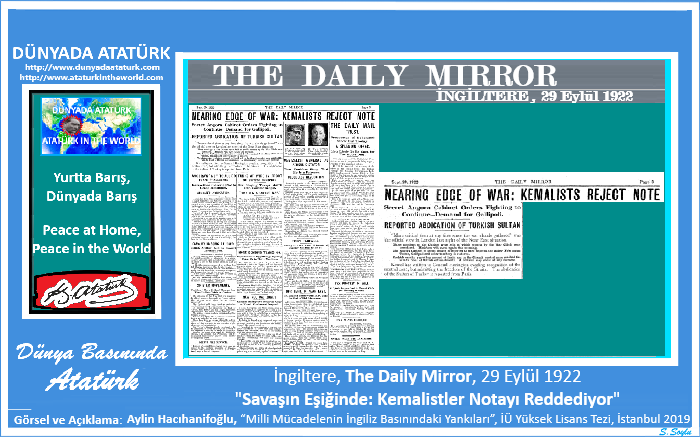 Dünya Basınında Atatürk Dünyada Atatürk: Dünya Basınında Atatürk; İngiltere, The Daily Mirror, 29.09.1922 – “Savaşın Eşiğinde: Kemalistler Notayı Reddediyor”