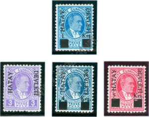 Hatay Devleti ve İskenderun Sancağı SURİYE’DE ATATÜRK KONULU SÜRŞARJ Suriye, 1938: Suriye Pulları Üzerine Sürşarjı Atatürk’ün Ölümü 10 Kasım 1938[1]Suriye (Sandjak d’Alexandrette / İskenderun Sancağı), 1938: Cumhurbaşkanı Atatürk’ün Ölümü 10 Kasım 1938[2] Sürşarj (Surcharge): Değerli kâğıtların veya pulun değerini değiştirerek veya değiştirmeksizin başka bir olayı anmak veya pulun çıkarılış amacını değiştirmek için üzerlerine yeni yazılar, rakamlar veya motifler basılması işlemidir.[2] [1] bitmezat.com, “KARIŞIK PARÇA / İskenderun Sancağı”, erişim: 10.05.2025 [2] Ankara Filateli Derneği, “Filateli Sözlüğü”, erişim: 04.06.2025