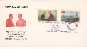 İran Atatürk Pulları İRAN PULLARINDA ATATÜRK İran, 1963: Atatürk (Ölümünün 25. Yılı) İran, 1973: Atatürk (Şah Pehlevi ile Birlikte)[1] İran, 1973:Atatürk [2] İran, 1976: Atatürk.[3] [1]İstanbul Büyükşehir Belediyesi Kütüphane ve Müzeler Müdürlüğü (ataturkkitapligi.ibb.gov.tr), “POSTA ATATÜRK PULLARINDA / ON POSTAGE ATATÜRK STAMPS”, İstanbul, Mayıs 2006, s.76, erişim: 02.06.2025 [2]Vedat OSMANOĞLU, “Dünya Filatelisinde Atatürk”, erişim:03.06.2025 [3]İstanbul Büyükşehir Belediyesi Kütüphane ve Müzeler Müdürlüğü (ataturkkitapligi.ibb.gov.tr), “POSTA ATATÜRK PULLARINDA / ON POSTAGE ATATÜRK STAMPS”, İstanbul, Mayıs 2006, s.79, erişim: 02.06.2025