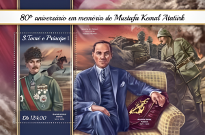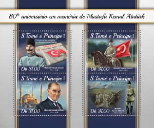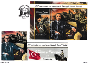São Tomé ve Príncipe Atatürk Pulları SÃO TOMÉ VE PRÍNCIPE PULLARINDA ATATÜRK Sao Tome ve Principe, 2018: Mustafa Kemal Atatürk (80. Ölüm Yıl Dönümü)[1] Sao Tome ve Principe, 2018: Mustafa Kemal Atatürk (80. Ölüm Yıl Dönümü)[2] [1] Vedat OSMANOĞLU, “Dünya Filatelisinde Atatürk”, erişim:03.06.2025 [2] delcampe (delcampe.net/), “Pullar / Mustafa Kemal Atatürk”, erişim: 06.06.2025
