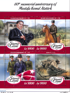 Sierra Leone Atatürk Pulları SİERRA LEONE PULLARINDA ATATÜRK Sierra Leone, 2015: Atatürk (Çanakkale Savaşlarının 100. Yılı / Gelibolu)[1] Sierra Leone, 2018: Atatürk (Ölümünün 80. Yılı)[2] Sierra Leone, 2018: Atatürk (Ölümünün 80. Yılı)[3] [1] Vedat OSMANOĞLU, “Dünya Filatelisinde Atatürk”, erişim:03.06.2025 [2]Sarppulculuk, “100 Yılın Müzayedesi / Yabancı Ülke Atatürk /SIERRA LEONE”, erişim:10.06.2025 [3] delcampe (delcampe.net/), “Pullar / Mustafa Kemal Atatürk”, erişim: 06.06.2025